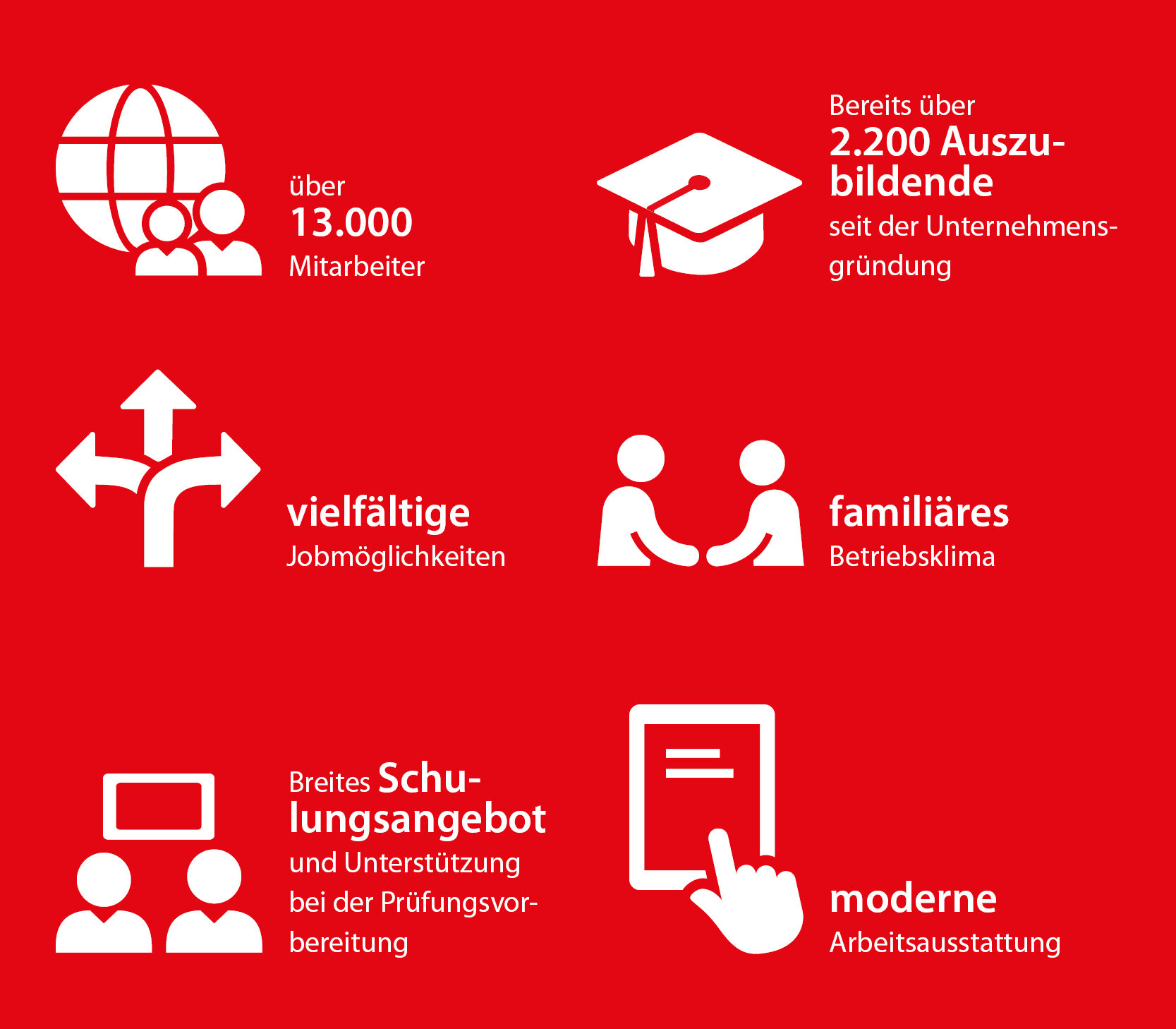 Direkt nach der Schulzeit finanziell unabhängig zu sein, das ermöglichen wir dir mit unserer attraktiven Ausbildungsvergütung. Du kannst dir selbst etwas leisten, ohne jemandem auf der Tasche zu liegen. Und du kannst Ersparnisse anhäufen, die es dir ermöglichen, deine persönlichen Ziele zu finanzieren.